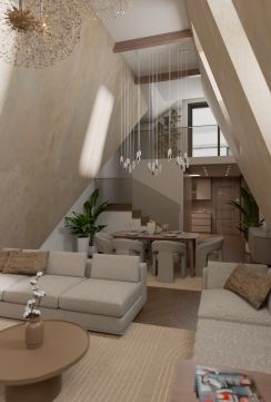 Ez a lakás ideális választás azoknak, akik egy világos, tágas és jól tagolt tetőtéri otthonra vágynak a belváros szívében, ahol a funkcionalitás és a stílus kéz a kézben jár.