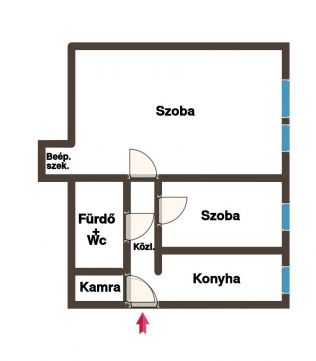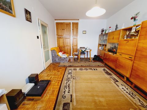 A városközpont közelében eladóvá vált egy 44 m2-es, 1 egész és 1 félszobás, középső elhelyezkedésű lakás egy 4 szintes, téglaépítésű társasház 3. emeletén.