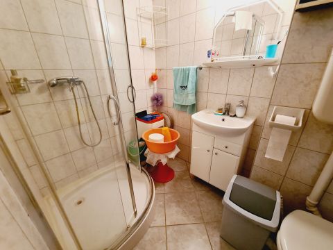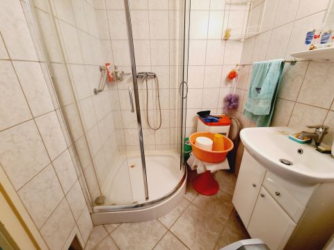 A felújított fürdőszoba modern megjelenést és kényelmes használatot biztosít, a cserélt bejárati ajtó pedig növeli a biztonságot és javítja a hőszigetelést.