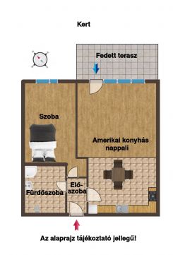 A lakás központja a TÁGAS, VILÁGOS amerikai konyhás nappali, amelyhez egy külön nyíló szoba és egy kényelmes fürdőszoba kapcsolódik. Észak-keleti tájolásának köszönhetően a délelőtti napfény kellemesen beragyogja a tereket, a klíma pedig a melegebb napokon is KELLEMES. A nappaliból egy FEDETT, 9 m²-es teraszra léphetünk ki, amelyhez SÖVÉNNYEL elkerített, HANGULATOS kis kert tartozik valódi privát pihenőtér. A kertben ÖNTÖZŐRENDSZER működik, így a zöld környezet fenntartása egyszerű és KÉNYELMES.