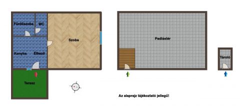 39 m²-es lakás külön, 2 nm-es tárolóval, és 50 m² padlástérrel