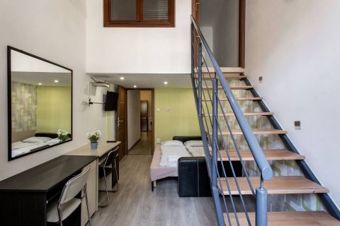 Az ingatlan 5 éve teljeskörűen felújításra került, a teljes alapterülete 83 m²-es, egy 40 m²-es és egy 43 m²-es, teljesen különálló lakást alakítottak ki itt, zárt, ablakos galériával (12/12 m²), az ehhez ideális méretű belmagasságnak köszönhetően, így a lakás használható alapterülete 108 m².