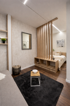 A lakás belsőépítész által tervezett, igényes kivitelezéssel készült, magas műszaki tartalommal és egyedi bútorokkal, így azonnal költözhető, ráfordítást nem igényel.