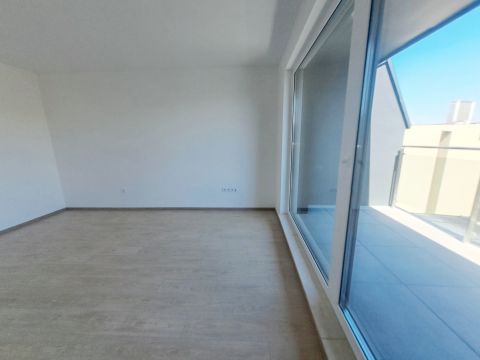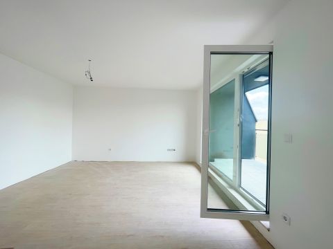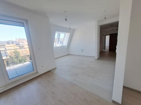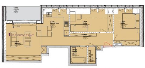 2025-ös építésű társasház legfelső, 6. emeletén eladó ez az amerikai konyhás nappali + 2 hálós elosztású, 10 m2 loggiás lakás.