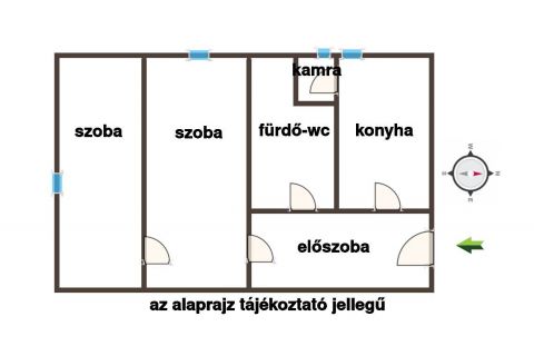 Elrendezés.2 szoba, konyha, előszoba, fürdő, kamra, alagsori tároló.