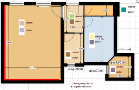 1 nagy szoba, konyha, fürdőszoba, külön WC, hall és előszoba alkotja.
