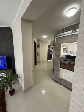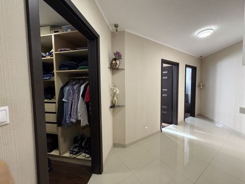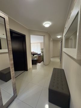 Belső elrendezése átgondolt és kényelmes: tágas nappali, étkezős konyha, két külön nyíló hálószoba, gardrób, fürdőszoba, külön mosdó, háztartási helyiség és széles, világos folyosó alkotják.