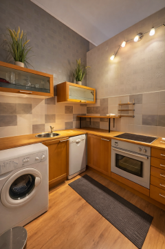 A lakás a közkedvelt Véndiák étterem felett helyezkedik el, így a környék pezsgő belvárosi életérzést kínál, miközben minden fontos szolgáltatás, egyetemek, kávézók és tömegközlekedés néhány lépésre található.