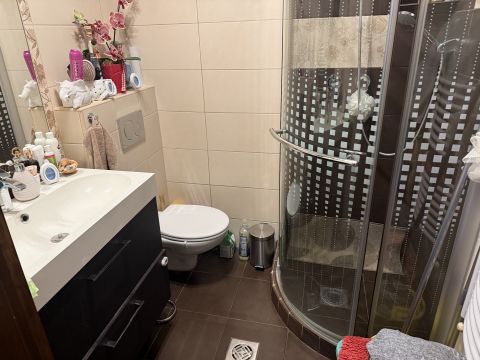 Gépíesített konyhabútorral/ mosogatógép, páraelaszívó, mikro, elektromos tűzhely, víztisztító/, klímával.