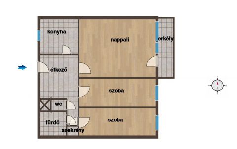 - nappali + 2 fél szoba