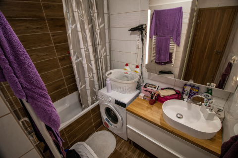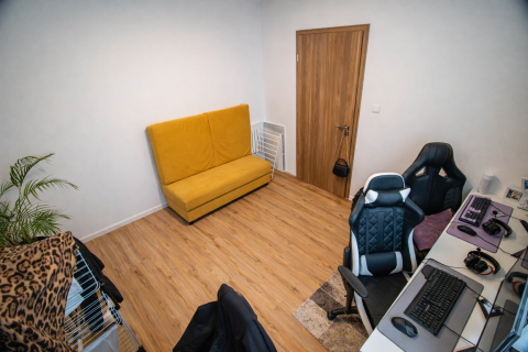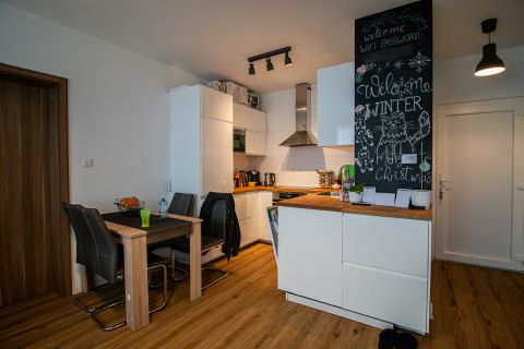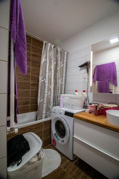 Nem csak esztétikus, hanem ergonomikus és logikusan felépített munkateret ad. Ez komoly előny azoknak, akik szeretnek főzni és tudják, mennyit számít egy jól kialakított konyha. Saját parkoló beálló is jár az ingatlanhoz, ami ezen a környéken kifejezetten értékes.