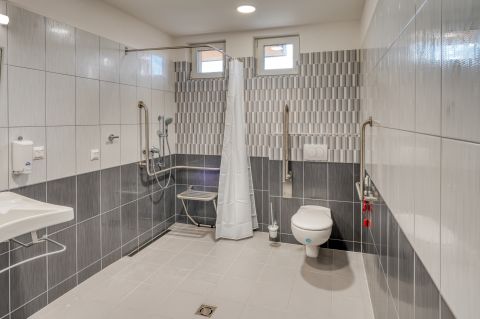 Kapaszkodókkal ellátott, küszöbmentes zuhanyzó
