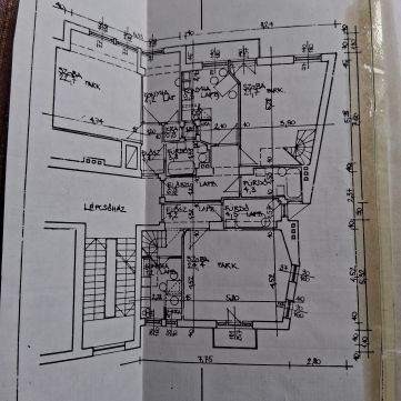 Felső szint (tetőtér): Egy nagyobb szoba, két félszoba (melyek igény szerint egybenyithatók) és egy kádas fürdőszoba.