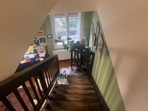 Eladó a XII. kerületben, a MOM Park közvetlen közelében egy déli fekvésű, 93 m²-es (bruttó 100 m²) belső kétszintes lakás. Az ingatlan egy 1932-ben épült ház 3. emeletén található, világos, csendes, és rálátni a Sashegyre, a Gellért-hegyre és a Svábhegyre.