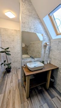 A környék infrastruktúrája kiváló: üzletek, patika, éttermek, buszmegálló néhány perc alatt elérhetők.