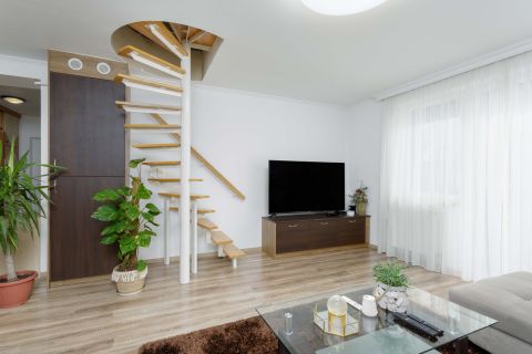 Mosonmagyaróvár Mosoni városrészén, csendes, rendezett környezetben kínálunk megvételre egy igazán hangulatos, belső kétszintes társasházi lakást.