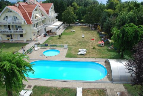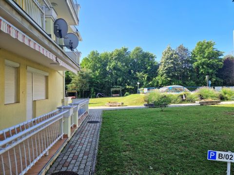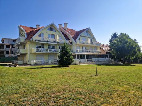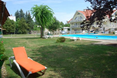Az ingatlan a városközponttól 10, a Balaton-parttól, strandtól 2 perces sétatávolságra van. A gondozott közös kertben található felnőtt - illetve gyerek medence, kiülő, grillező.