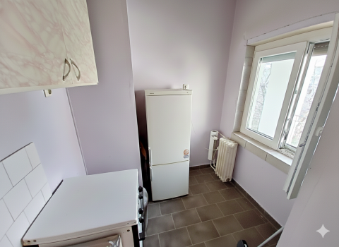 Eladó egy alacsony fenntartási költségű garzonlakás, Tatabánya-Újváros egyik tégla építésű tömbjének 3. emeletén.