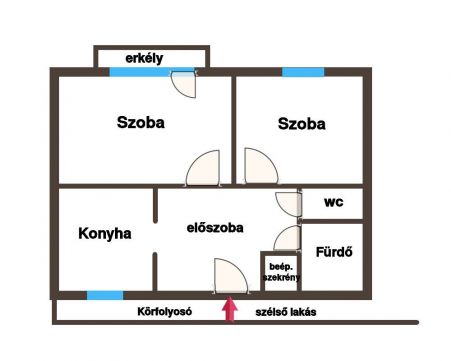 - tégla építésű, körfolyosós társasház 1. emeletén