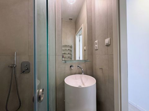 A lakás a harmadik emeleten található, lift könnyíti a megközelítést. 2022-ben egy neves belsőépítész tervei alapján teljes körűen megújult: a tágas nappaliból üvegfallal leválasztott hálórész, az egyedi konyha, a letisztult fürdőszoba és a modern kényelmi elemek (klíma, redőnyökkel felszerelt nyílászárók) elegáns egységet alkotnak.