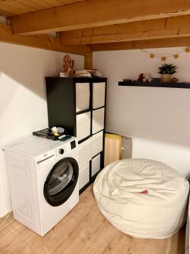 A lakás 3,5 méteres belmagasságának köszönhetően galériázott, így a tér kihasználása kiváló, kényelmes életteret biztosít akár hosszabb távra is.