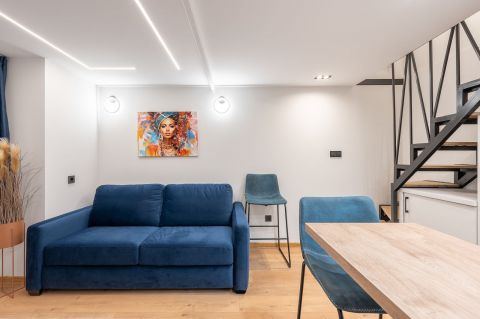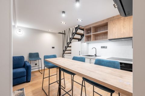 A Horváth Mihály térnél, a Német utcában eladó ez a frissen felújított ingatlan. A nagy belmagasságnak köszönhetően belső kétszint lett kialakítva.