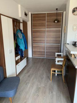 A lakás 2 különbejáratú szobából, amerikaikonyhás nappaliból, fürdőszobából, külön wc-ből, előtérből, közlekedőből és teraszból áll. Külön vízóra van. 3 klíma és redőnyök biztosítják a lakásban lévő kellemes hőérzetet. A passzázsról lehet megközelíten a teremgarázst, bár a tulajdonos nem vásárolt parkolóhelyet. Az utcán a parkolás ingyenes. A növényekkel beültetett hűs, árnyas belső kertben játszóeszközök, pihenő padok és szökőkút biztosítja a kellemes időtöltést.
