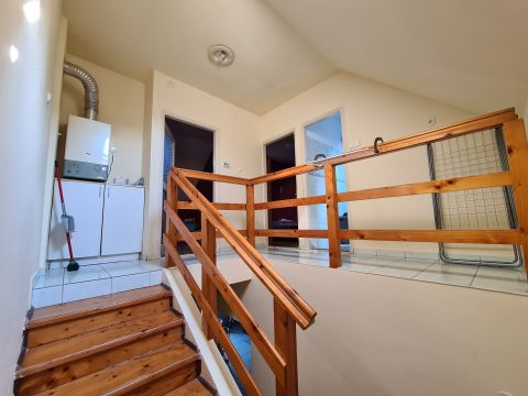 A társasházi épület szigetelt, cserépfedéses. A fűtést és a melegvizet gáz kombi kazán látja el.
