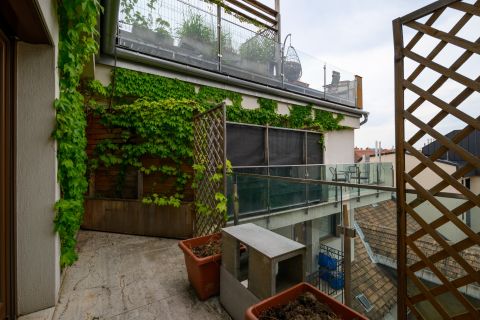 In the very heart of Budapest, on the modern top floor of a prestigious, historic residential building with elevator, we offer for sale a rare two-level penthouse apartment that represents both a high-status residence and an outstanding investment opportunity.