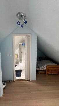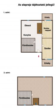 A lakás alsó szintjén két külön nyíló szoba található, melyek közvetlen erkélykapcsolattal rendelkeznek, ahonnan panorámás kilátás nyílik Hévíz városára, illetve az utcára. Ezen a szinten kapott helyet továbbá egy étkezős nappali konyhával, valamint egy zuhanyzós, WC-s fürdőszoba. A felső szint egy falépcsőn közelíthető meg, ahol egy világos, nyitott tér, valamint egy további fürdőszoba került kialakításra.