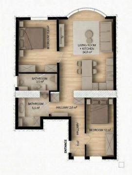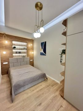 Az ingatlan funkcionálisan kiváló elrendezésű: nappali + 2 külön nyíló hálószoba, 2 fürdőszoba. A lakás egyedileg gyártott bútorokkal berendezve, gépesítve várja leendő lakóját.