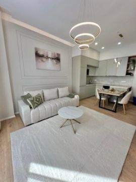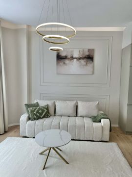 The property features an excellent, functional layout: a living room, two separate bedrooms, and two bathrooms. The apartment is sold fully furnished with custom-made furniture and fully equipped, ready for immediate occupancy.