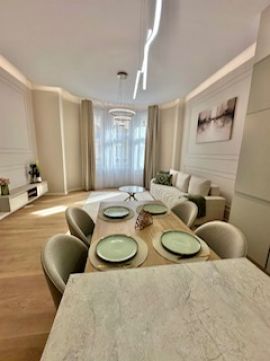 Budapest szívében a 6. kerületben, a Deák tér közelében, az Andrássy úttól karnyújtásnyira, eladó egy 69 m²-es, első emeleti, utcai nézetű, teljes körűen felújított lakás liftes, jó állapotú társasházban.