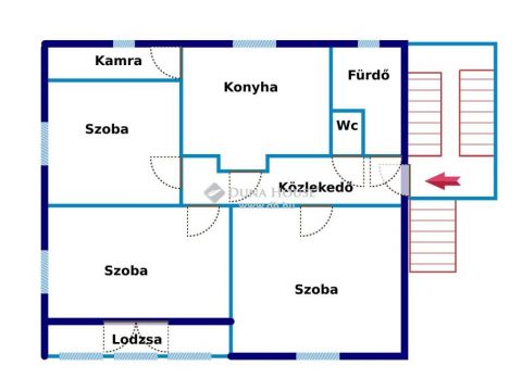A lakás elosztása ideális: három külön nyíló szoba, az egyikből egy lodzsa nyílik ,külön konyha, fürdőszoba, külön WC, valamint kamra is helyet kapott benne minden adott egy kényelmes és praktikus élettér kialakításához.
