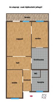 Helyiségek: tágas nappali, 2 hálószoba, hall, konyha, előszoba, gardrób szoba, fürdő, wc
