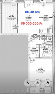Nyír-pláza közelében 11 lakásos újépítésű társasházban 1. emeleti 86.38nm alapterületű nappali+amerikai konyha +2 szobás kiváló elrendezésű nagy erkélyes lakás eladó!