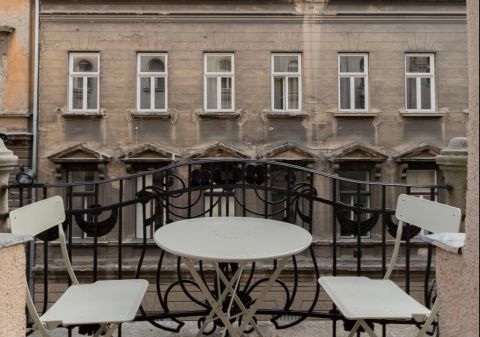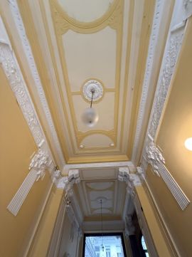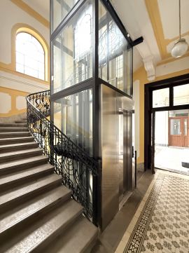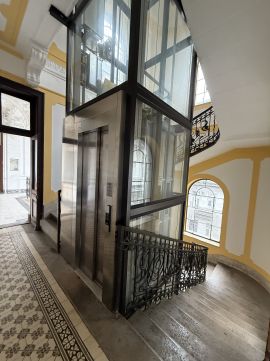 A ház patinás, kívül-belül felújított és szépen karbantartott, liftes.