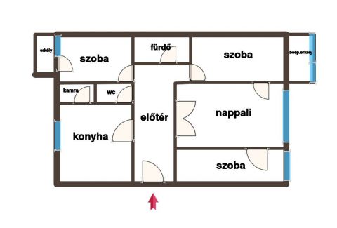 - 2 db erélye van, az egyik /8,7 nm!/ beépítve /télikert, vagy dolgozószoba, vagy ismét nyitott erkéllyé varázsolni/