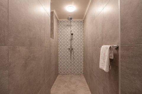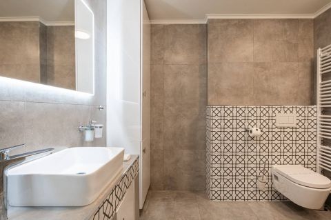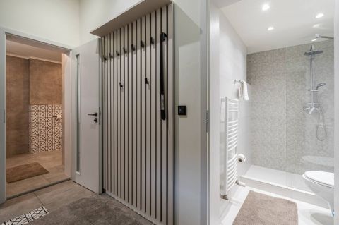 A magas minőségű burkolatok, egyedi beltéri ajtók és modern berendezések elegáns hangulatot teremtenek.