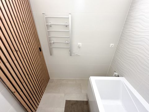 A lakás friss felújításon esett át, melynek során megújultak a hideg- és melegburkolatok, a falak friss