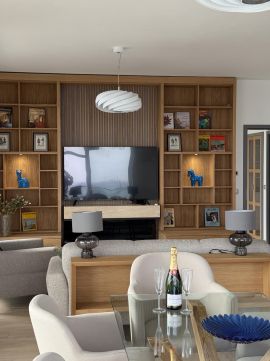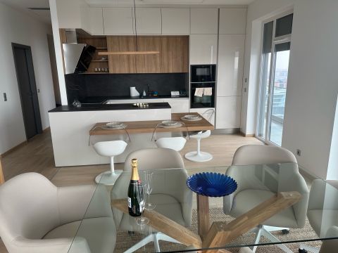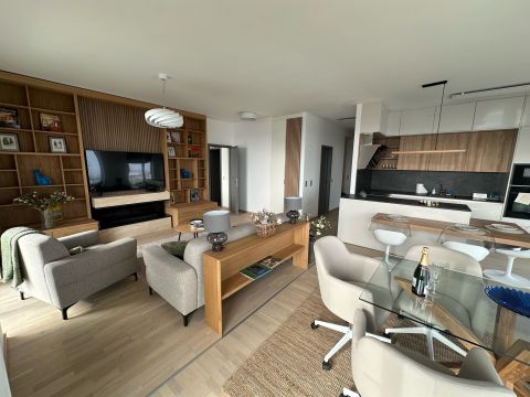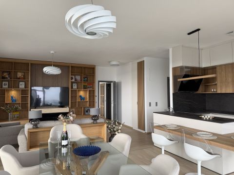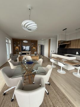 A lakás minden részletében a magas minőséget képviseli. A tágas, világos amerikai konyhás nappali padlótól plafonig érő üvegfelületeivel természetes fénnyel telik meg, miközben a Duna látványa mindennap élvezhető. Az egyedileg tervezett, teljesen gépesített konyha márványhatású munkalappal és prémium beépített gépekkel felszerelt, ahol a funkcionalitás és az esztétika tökéletesen találkozik.