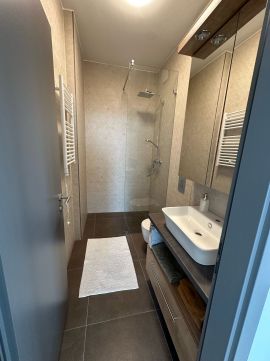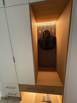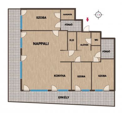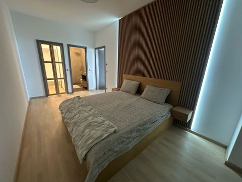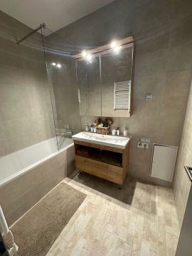 A három hálószoba külön nyíló, csendes és jól szeparált, közülük az egyik saját fürdőszobával rendelkezik. A két fürdőszoba modern burkolatokkal, minőségi szaniterekkel és letisztult dizájnnal készült. A lakásban külön kamra is helyet kapott, ami praktikus tárolási lehetőséget biztosít.