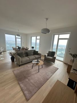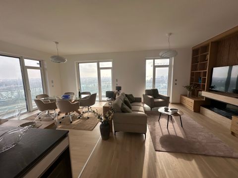 Kiadó egy 2024-ben épült, prémium minőségű társasház 15. emeletén található, 110 négyzetméteres, három hálószobás, új építésű lakás a 11. kerületben, közvetlenül a MOL Campus mellett. Az ingatlanhoz egy 40 négyzetméteres, teljes dunai panorámát kínáló terasz tartozik, ahonnan lenyűgöző kilátás nyílik a városra és a budai hegyekre.