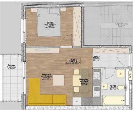 Élhető terek: Minden lakáshoz tartozik egy tágas, 5nm- 30 nm közötti terasz.