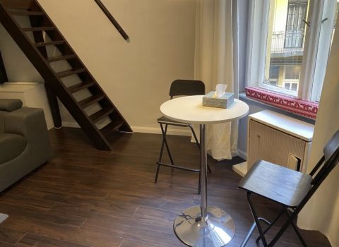 A lakás udvari nézetű, csendes, és az ablak előtt nincs átmenő forgalom, így a belváros nyüzsgése mellett is nyugodt lakókörnyezetet biztosít. A 3,80 méteres belmagasság lehetővé tette egy 12 nm-es galéria kialakítását, amely praktikusan növeli a hasznos életteret.