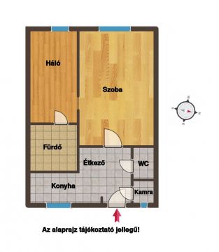 A lakás 39 m2 alapterületű, egy 4 emeletes tégla társasház 2. emeletén található, nyugati fekvésű, világos.