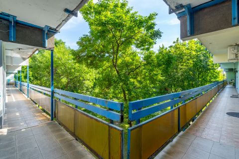 A felépítmény a 1970-es évek közepén épült csúsztatott zsalus építési technológiával, földszint és négy emelet szintkiosztással. A 4 emeletes társasház A,B,C lépcsőházában összesen 75, szintenként 6 lakás került kialakításra. Az kiadó ingatlan a 2.emeleten található.