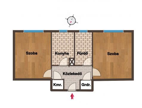 Most két szobás, de a konyha áthelyezésével könnyedén 2 szoba + nappali elrendezésre alakíthatod.