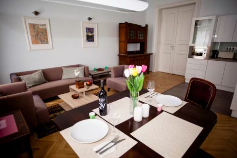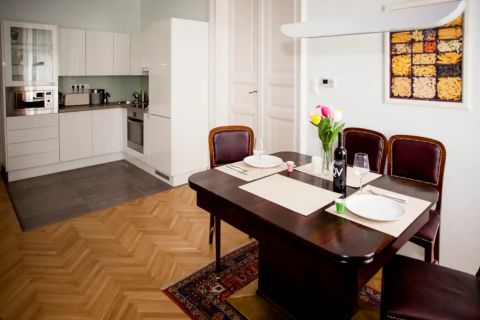 For sale in Budapests inner 6th district, on Paulay Ede Street, just steps away from the Hungarian State Opera, Deák Ferenc Square, and Andrássy Avenue, this truly grand yet homely, fully renovated apartment is waiting for its new owner.