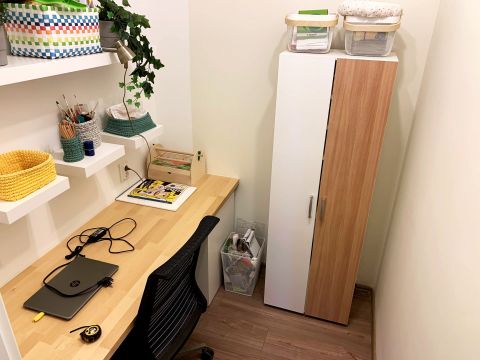 A 2017-ben teljes körűen felújított és átalakított ingatlan jelenleg nappali + 2 hálószoba + 2 dolgozós kialakítású, azonban igény szerint könnyedén visszaalakítható nappali + 3 hálós elrendezéssé.